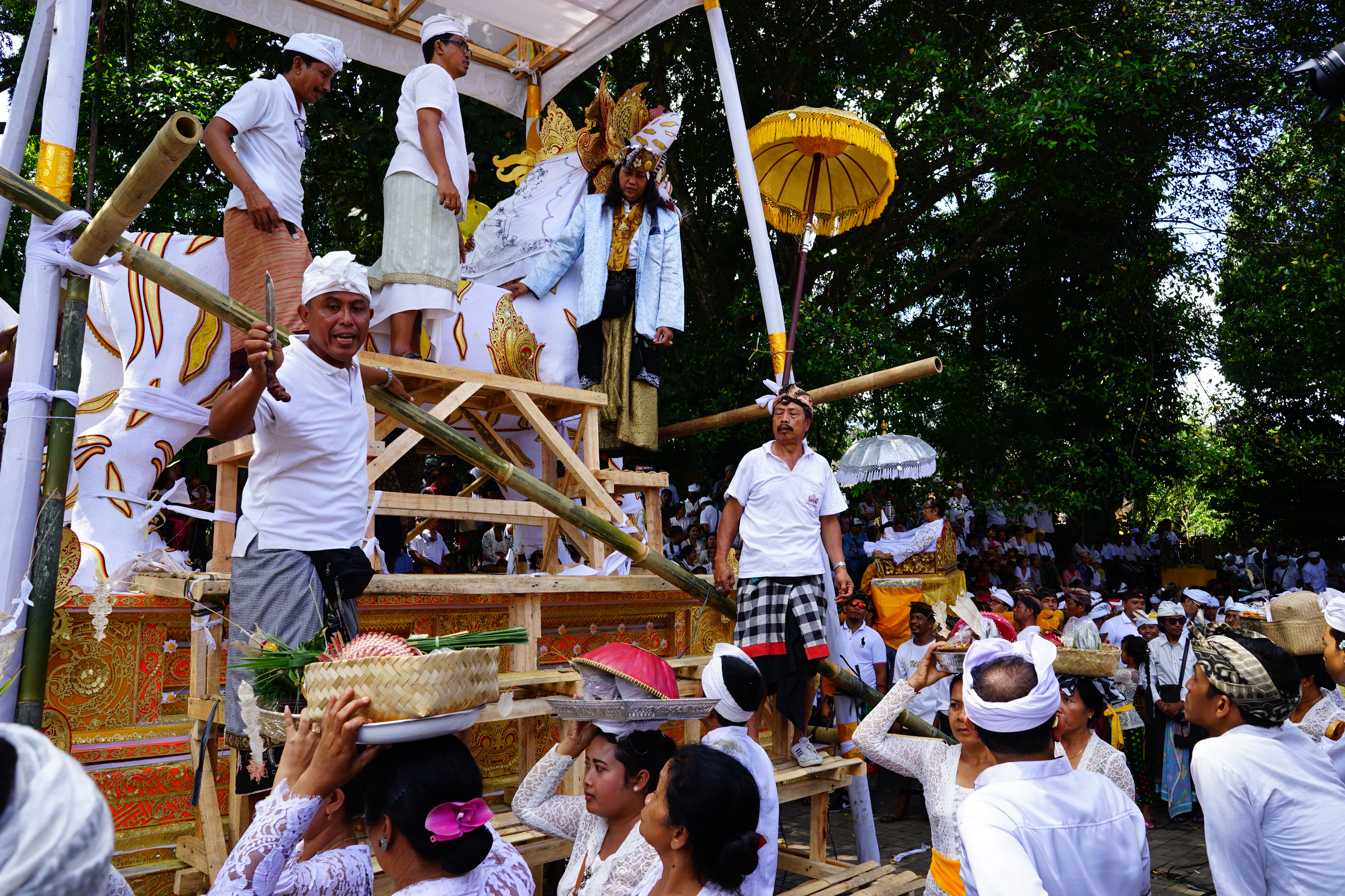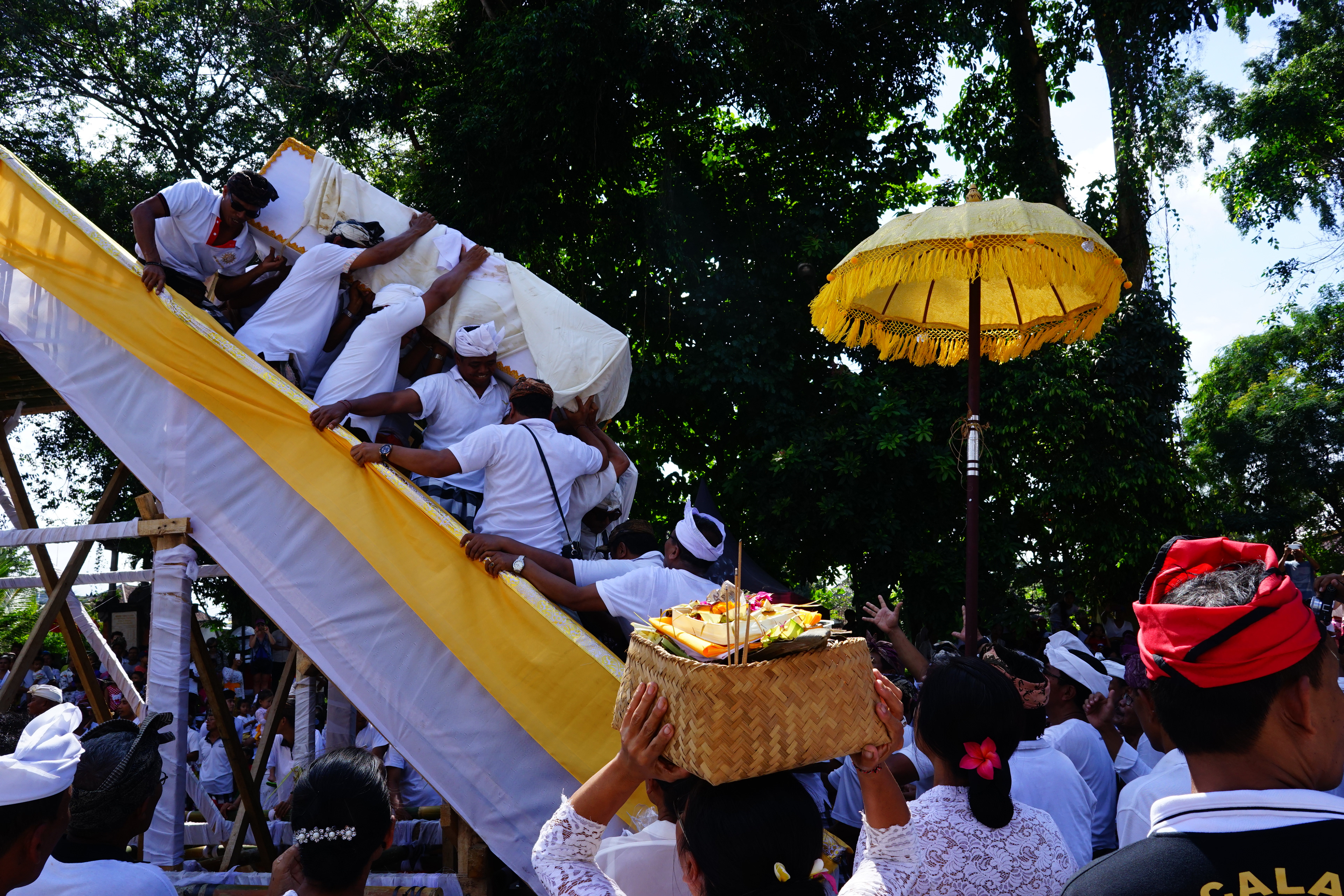 In Bali, death is not an end but a passage to the next life. Ngaben, the island’s elaborate cremation ceremony, is a vibrant celebration of a soul’s journey. When a person of high status passes away, the community comes together for a grand procession filled with music, dance, and color. The body is placed in a towering, intricately decorated "wadah" (cremation tower) and carried through the streets to the cremation site. Bearers shake and spin the tower to confuse spirits and ensure the soul finds its way to the afterlife. At the ceremony’s peak, the body is placed in a "lembu" (bull-shaped sarcophagus) and set aflame, symbolizing the soul’s release from the earthly realm. Ngaben is a powerful testament to Bali’s spiritual beliefs — a striking blend of reverence, artistry, and collective mourning, honoring both life and the eternal cycle of rebirth.